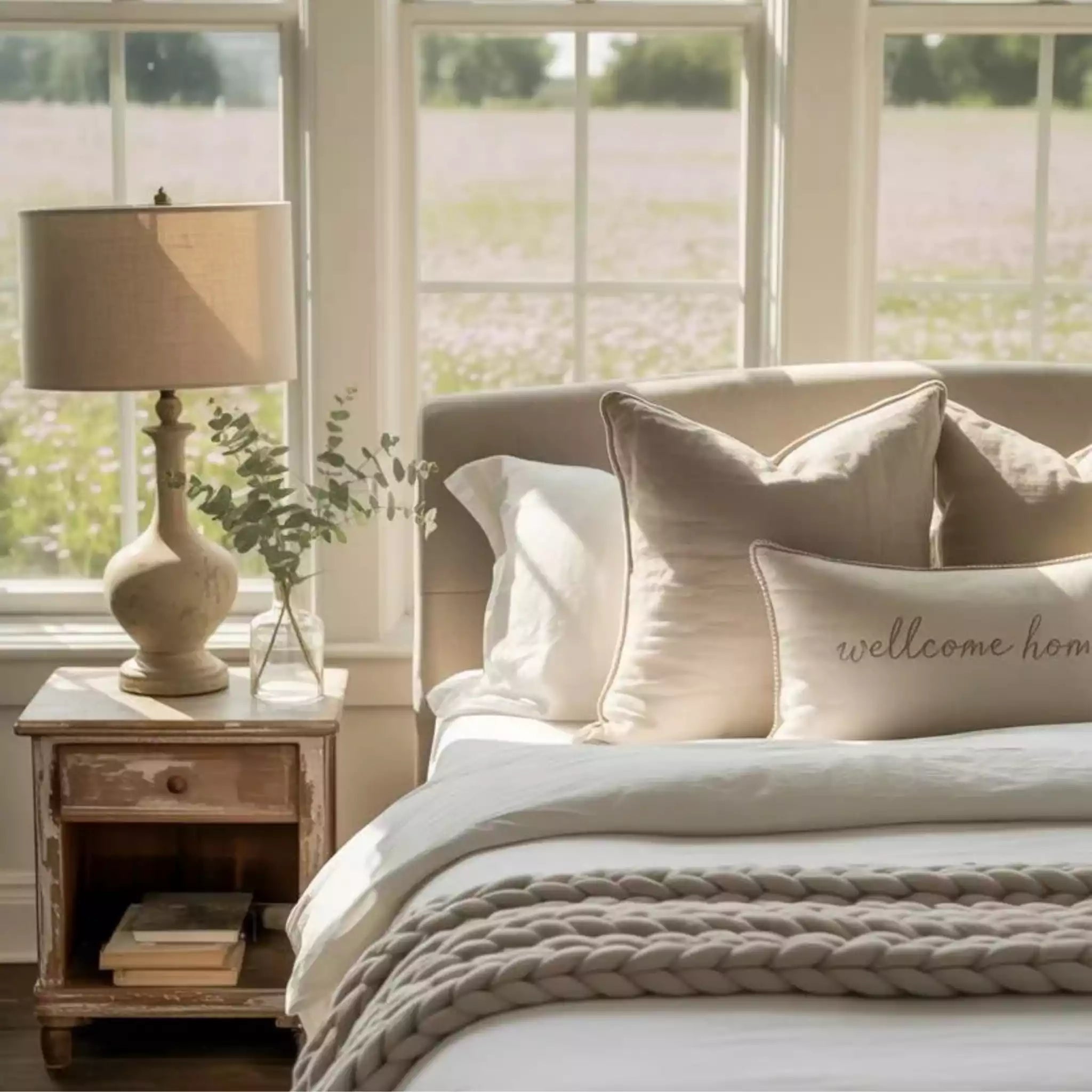 Arlo Farmhouse Wood Bed Frame, 52" Tall Headboard with Led Lights,Charging Station and 2 Drawers