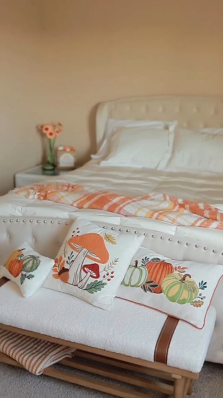 - The tall footboard echoes the winged headboard with the same diamond tufting, nailhead trim, and graceful curve