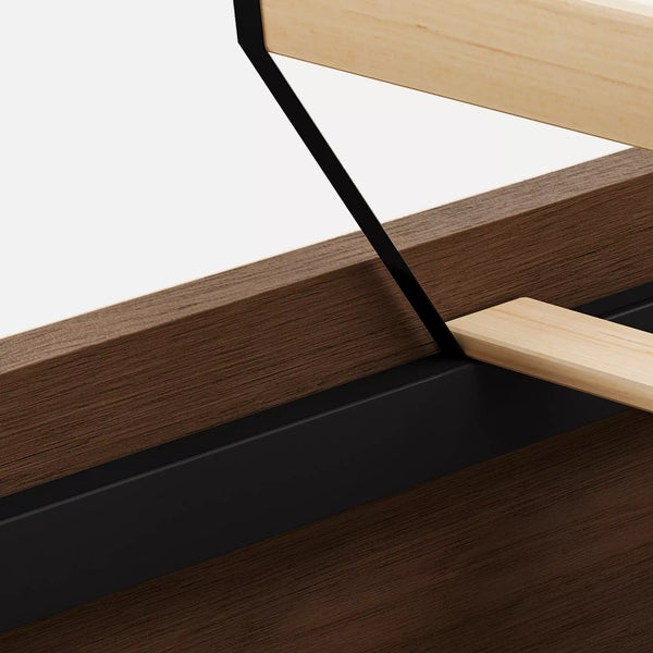 - Headboard Dimensions: The distance from the slats to the bottom of the storage shelf is approximately 11.4 inches. A mattress thicker than 16 inches might block the lower storage cubbies.
