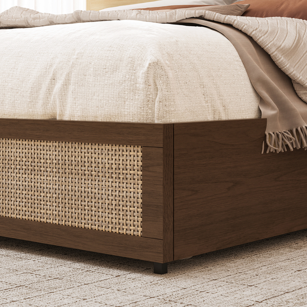 Boho Chic Rattan Storage Bookcase Bed Frame (Walnut)