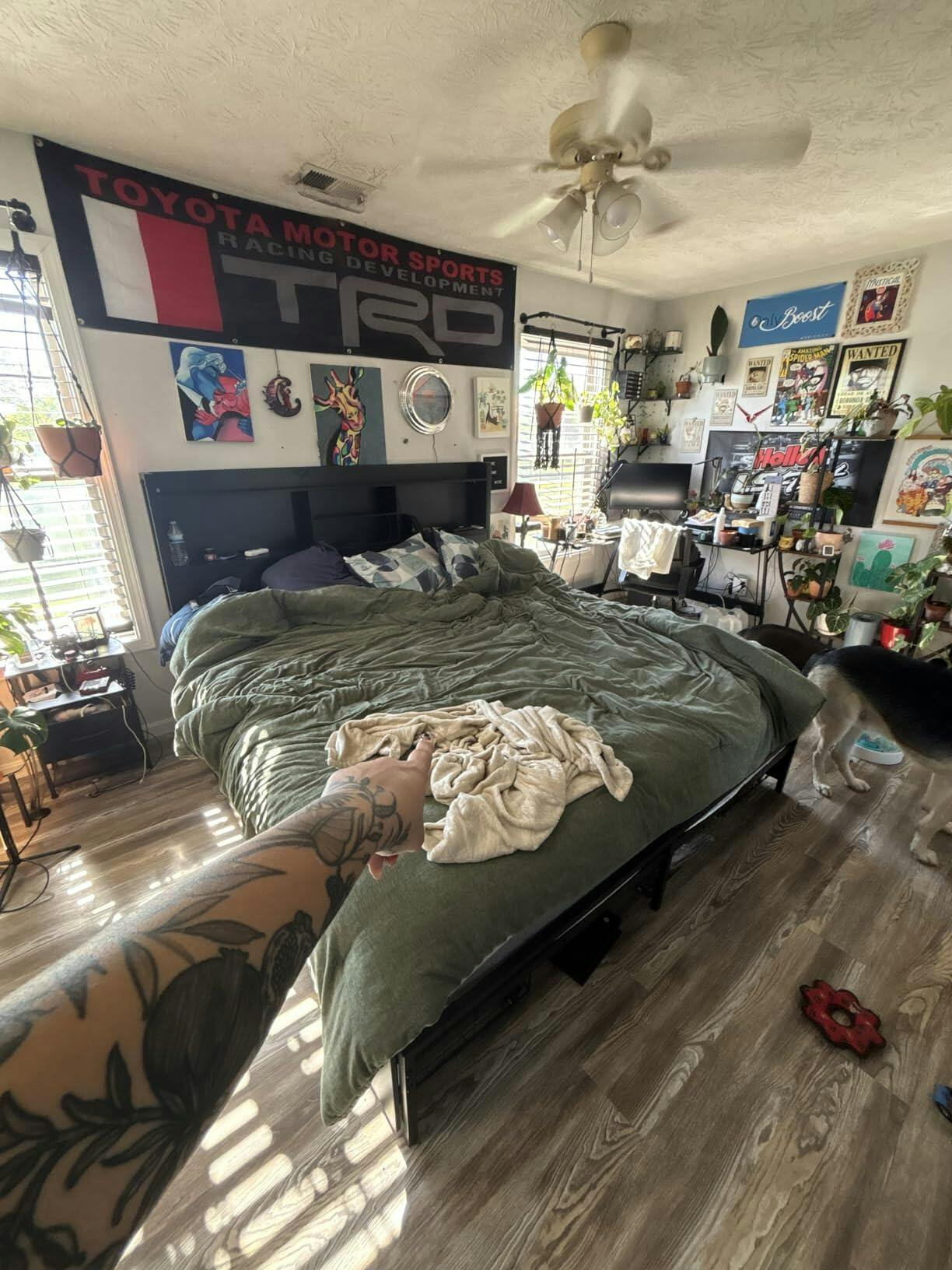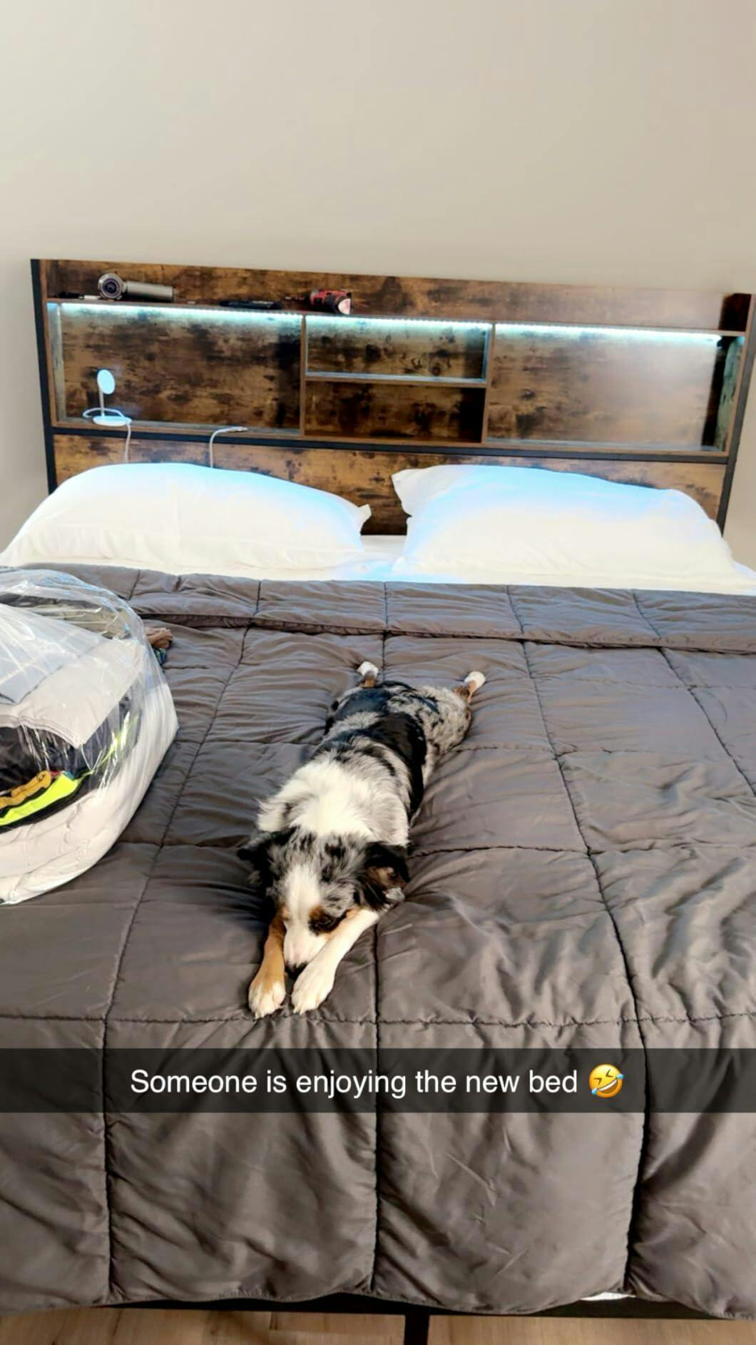 - Headboard storage: multi-size open cubbies for tablets, books, décor