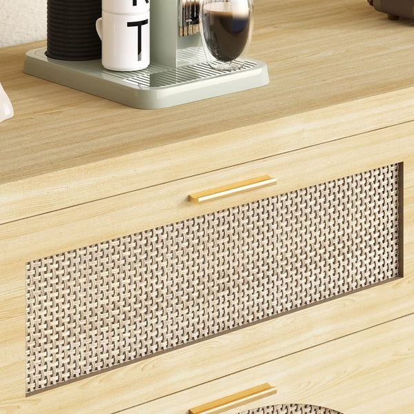 This dresser features high-quality Faux Rattan (Poly-rattan). We chose this material specifically for its durability. Unlike natural wicker, which can be brittle, prickly, and hard to clean, our faux rattan is smooth to the touch, moisture-resistant, and won't snag delicate clothing like silk or knitwear.