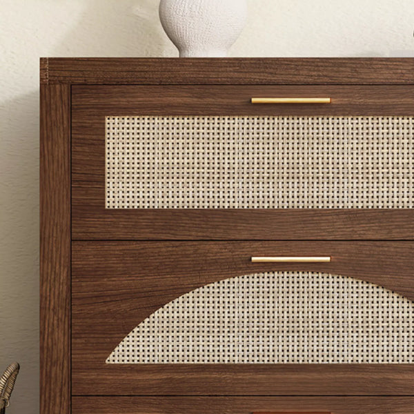 Arched Boho Rattan 6 Drawer Dressers-Walnet / Oak