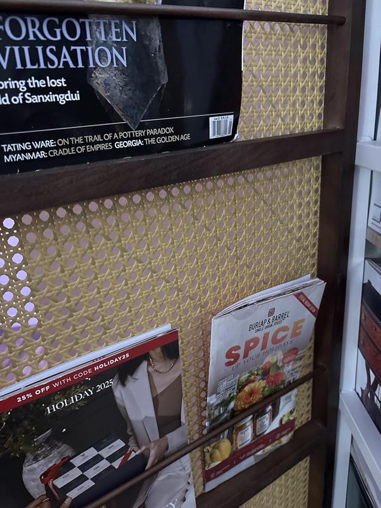 See the elegant woven texture up close and watch how the integrated rails perfectly display magazines and records. Get inspired by how this versatile piece effortlessly defines a space while adding a touch of modern personality to any room.
