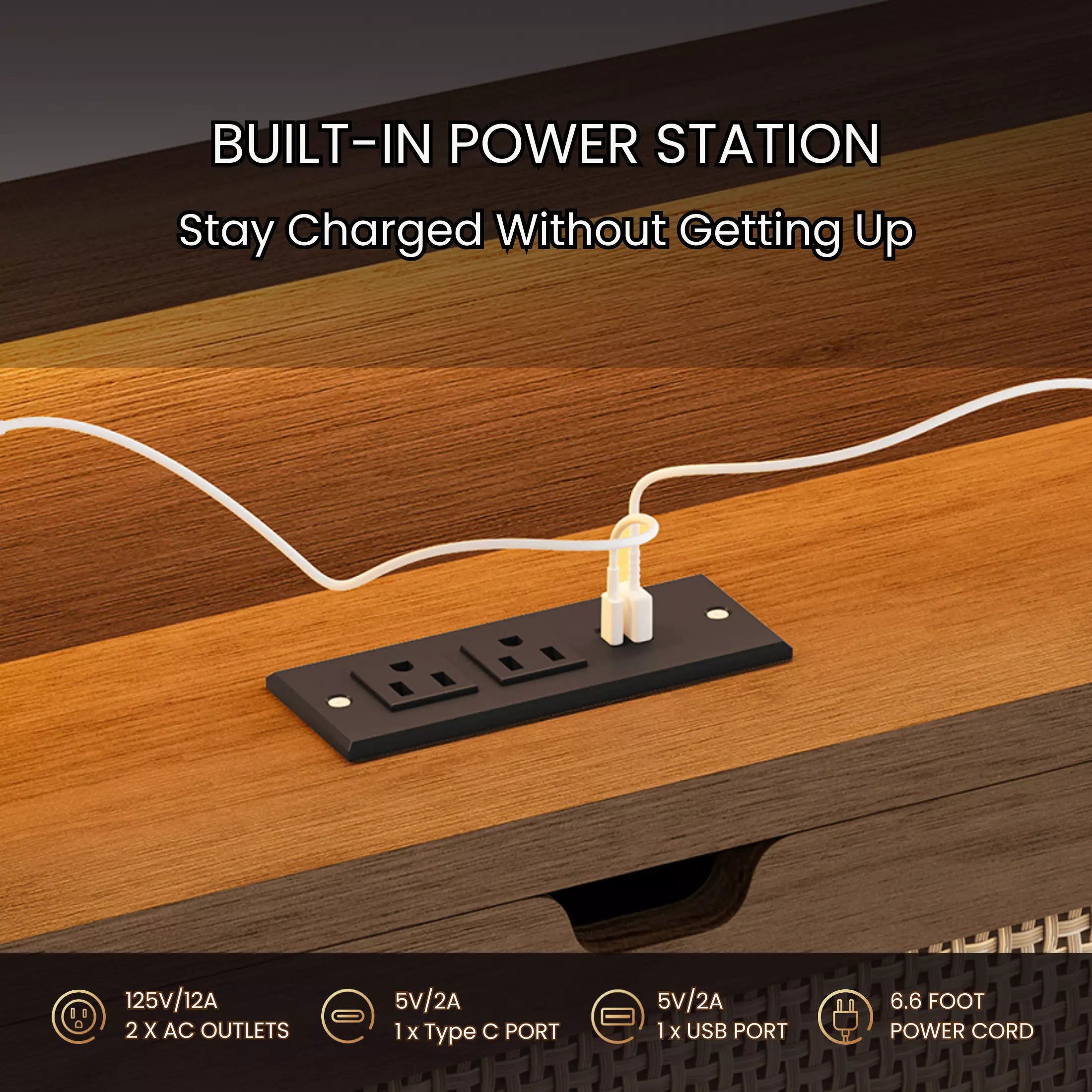 - Integrated Charging Station: (2 USB + 2 Outlets) keeps your devices powered within arm's reach.
