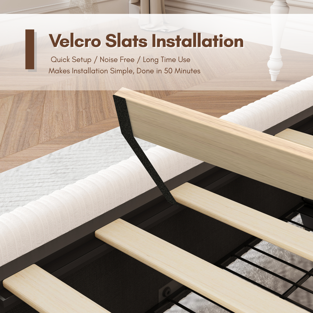 - Noise-free platform for restful sleep,no box spring needed.
