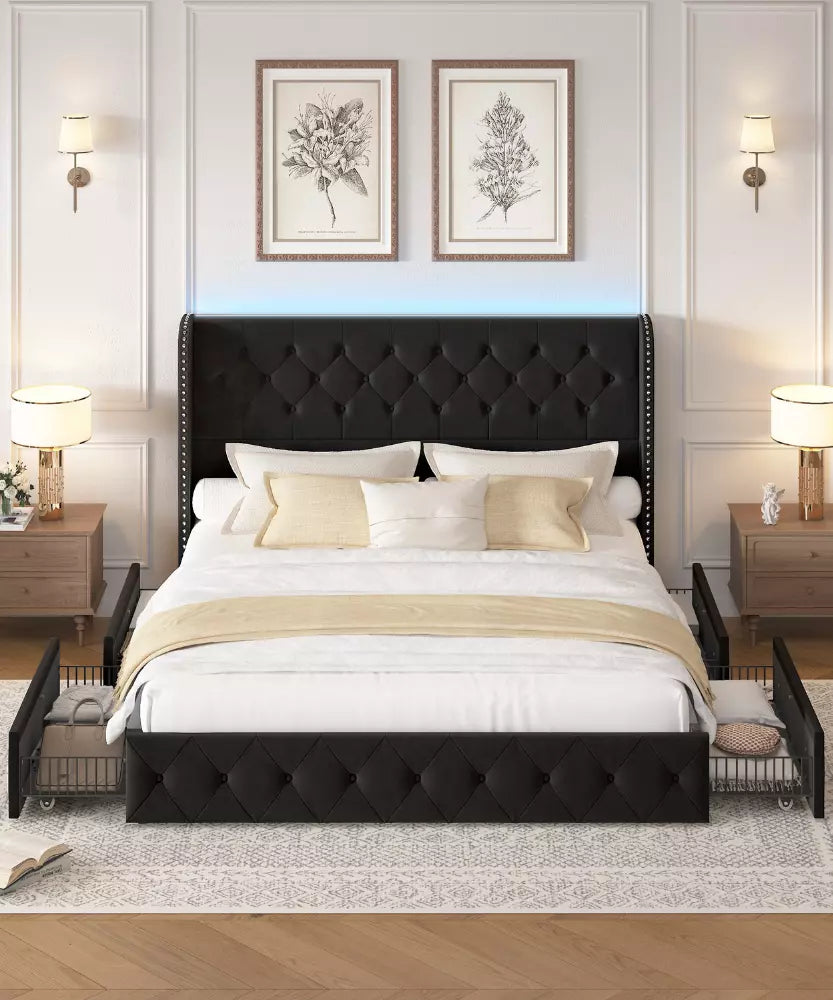 This velvet platform bed frame combines style and function with soft velvet upholstery.Designed for comfort, storage, and style in one modern bed frame.