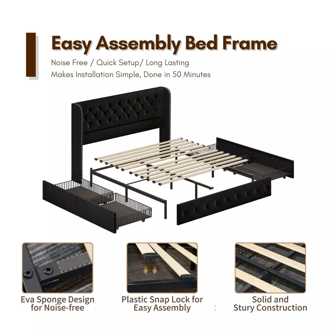 Declutter your room with 4 spacious drawers built into the frame. Keep your space clean and always organized.