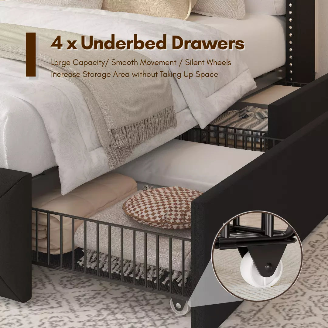 Four underbed hidden drawers keep your space clutter-free—no dresser needed.