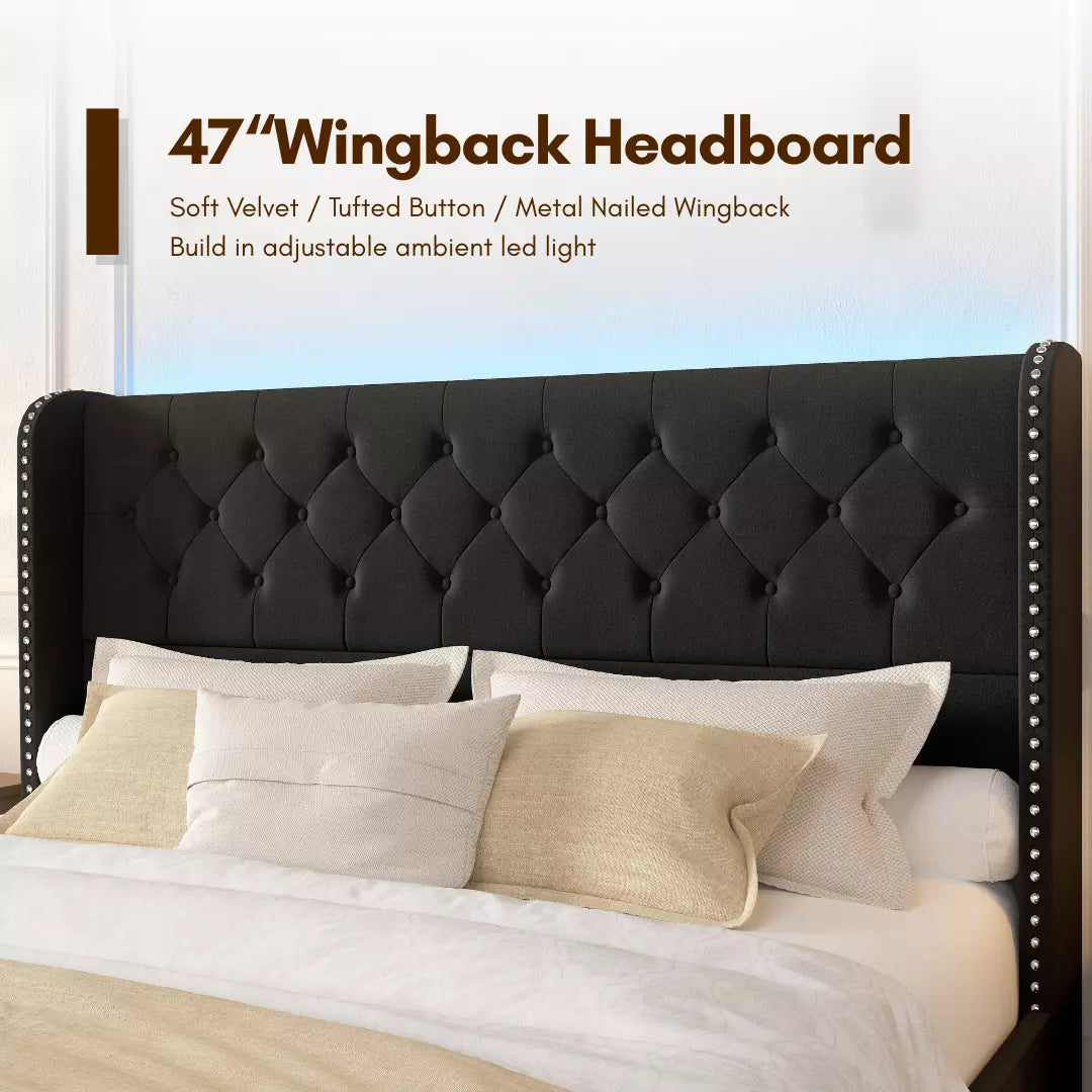 • Tall Wingback Headboard: 47" tufted design for cozy, supported lounging.
