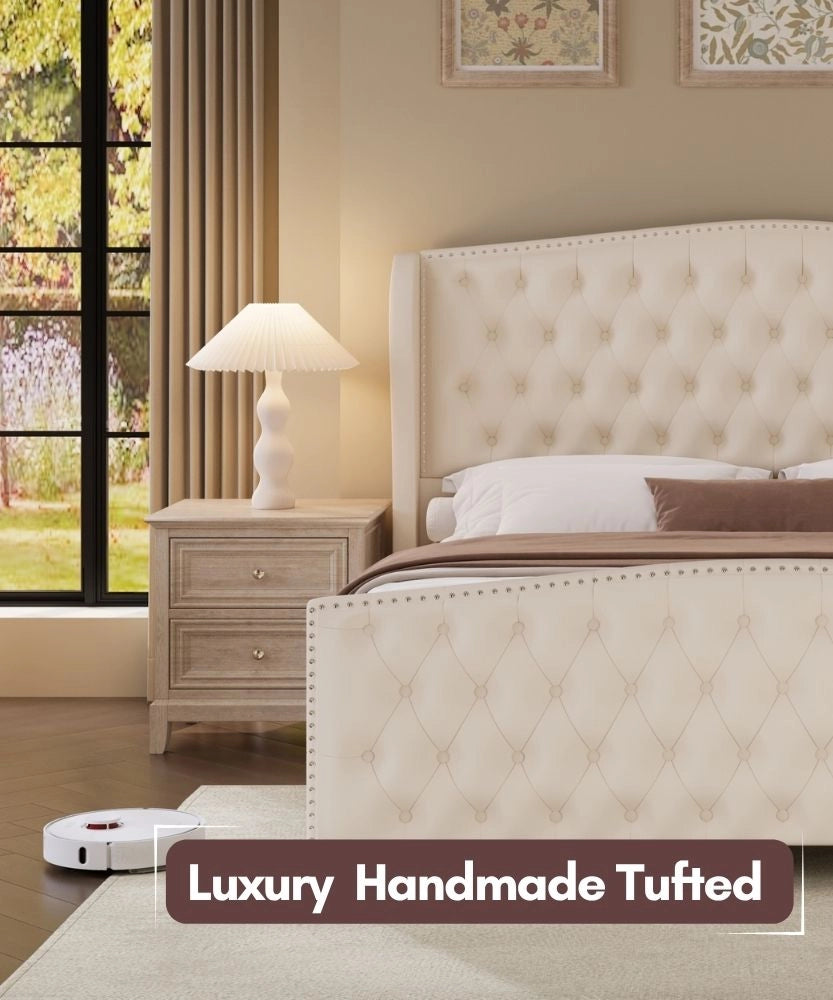 Eco-friendly faux-wood grain coating or as fully upholstered silhouettes. Finish yours in breathable linen, velvet, corduroy—for quiet, durable comfort night after night.