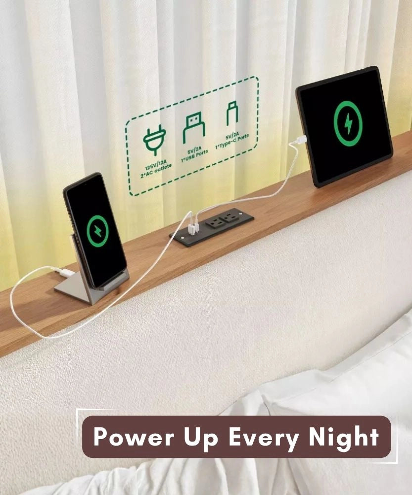 Built-in charging ports keep your phone and devices powered while you relax in bed.