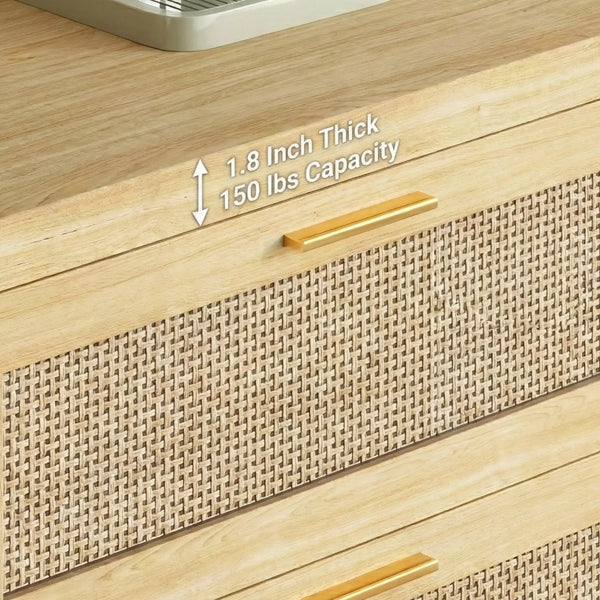 - Timeless & Versatile: This 6-Drawer Rattan Dresser combines classic rectangular woven fronts with gold hardware, blending seamlessly into Modern Farmhouse, Coastal, or Japandi interiors.