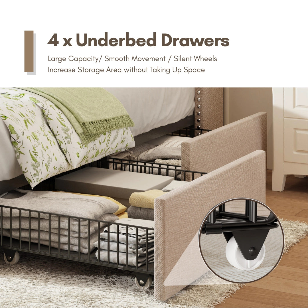 4 Large Storage Drawers,help to Keep bedding, clothes, and clutter neatly tucked away.