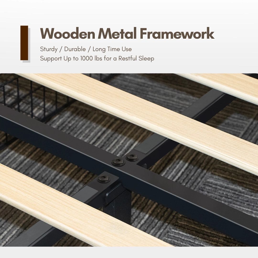 | Material | Solid wood slats+Matel Base+Fabric Linen upholstery |