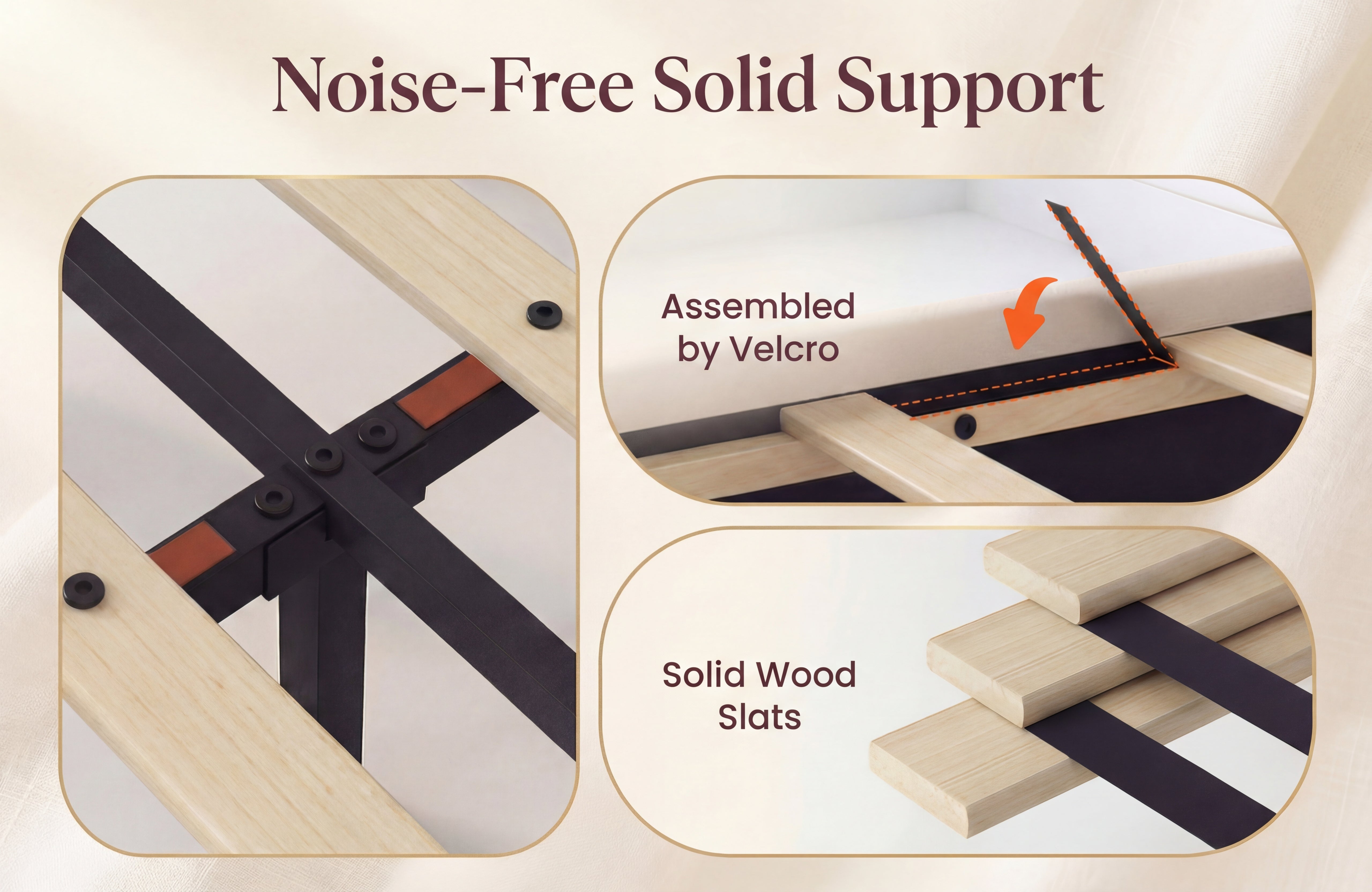 • Noise-free bed frame base.