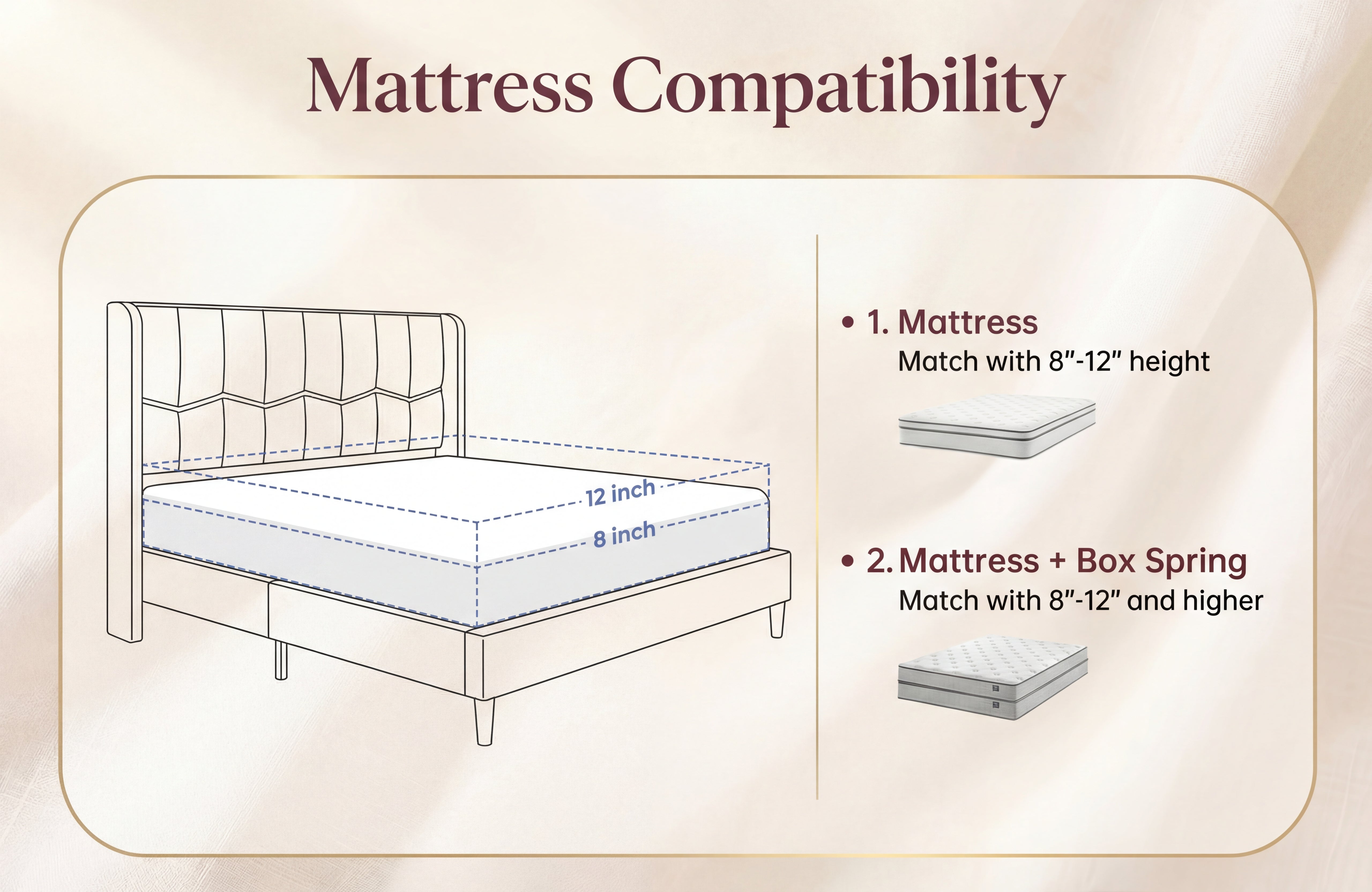 • Optimized for 8"–12" mattresses.