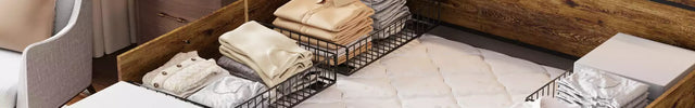 Efficient underbed storage includes 6 smooth-gliding drawers—perfect for organizing clothes, bedding, and accessories. Each drawer features screw-in locks to keep it securely in place.
