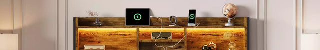 The warm LED backlighting inside the open shelves not only elevates your room’s ambiance but also doubles as soft nighttime lighting for reading or winding down.