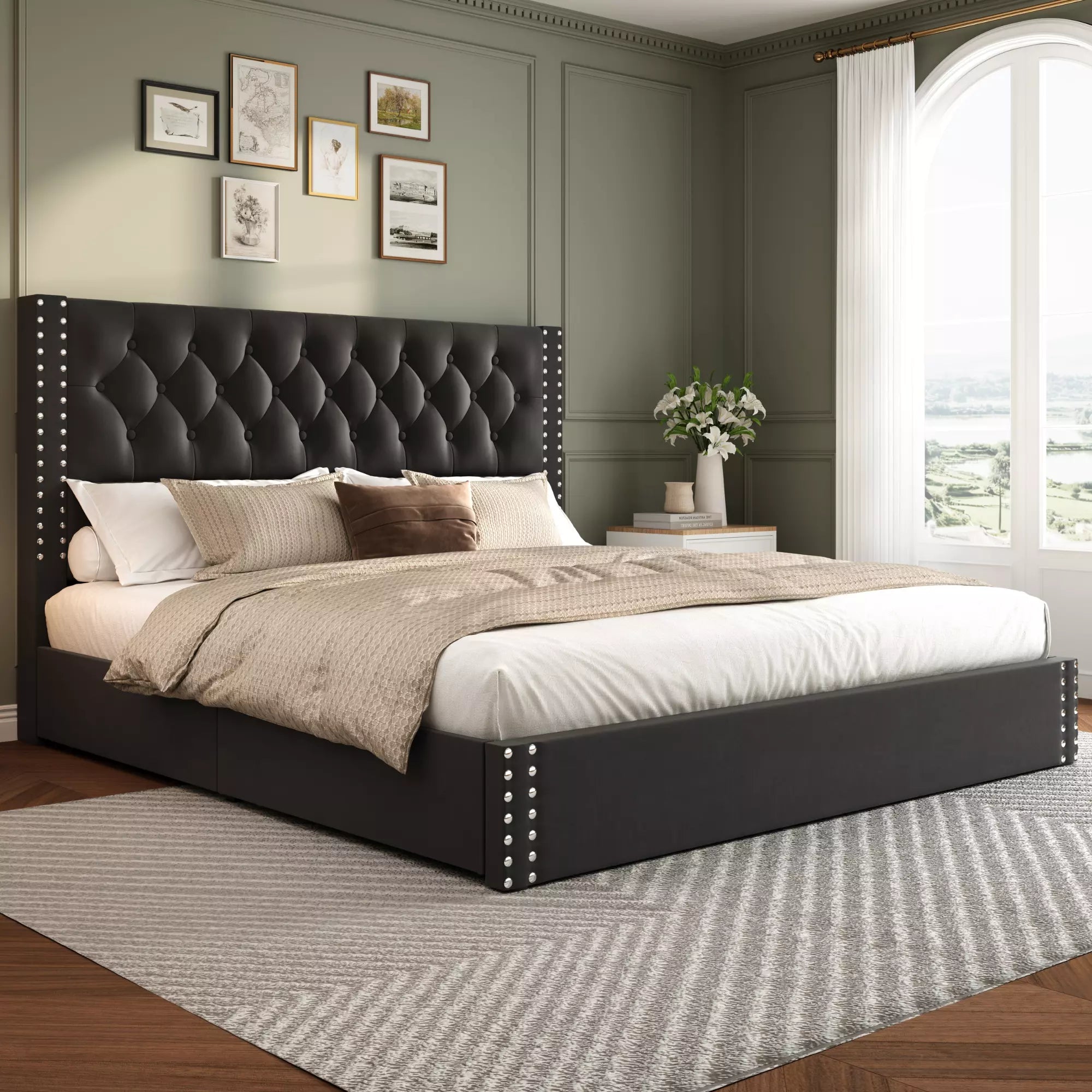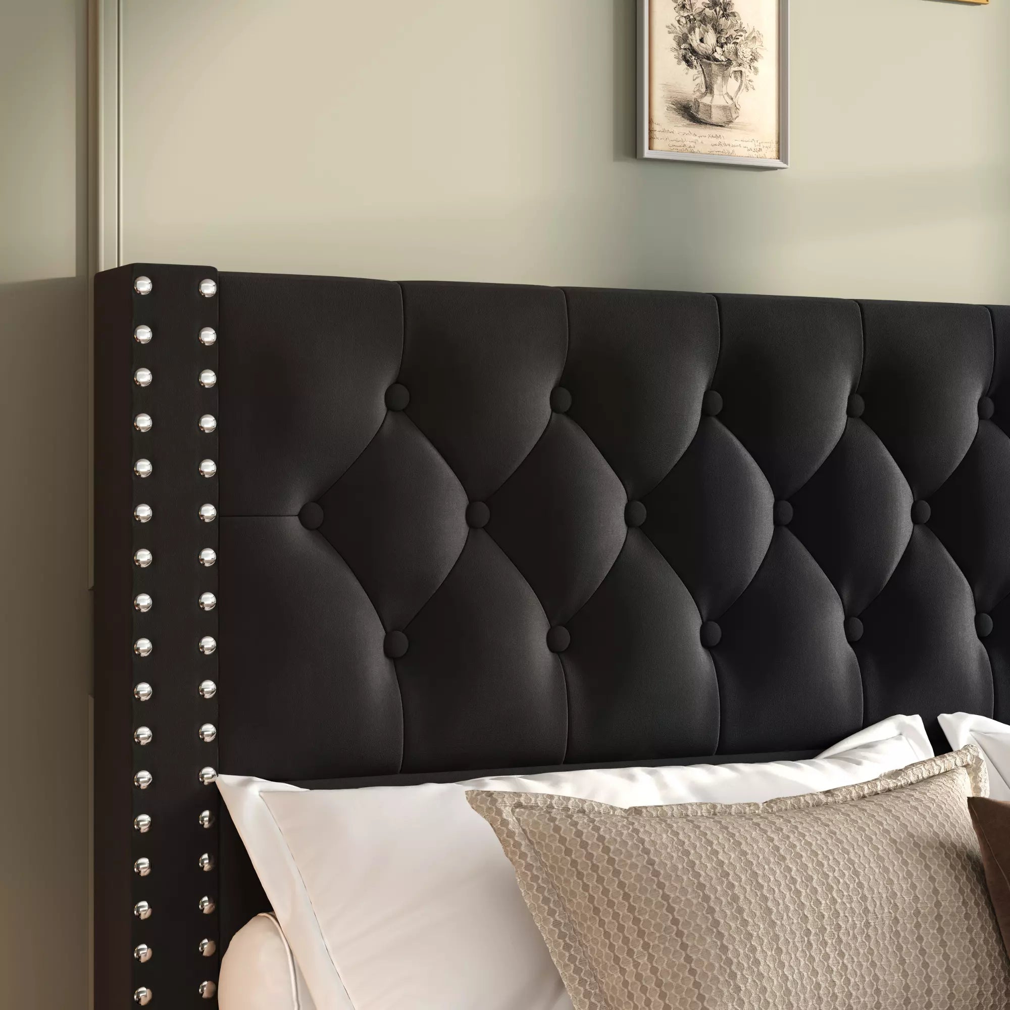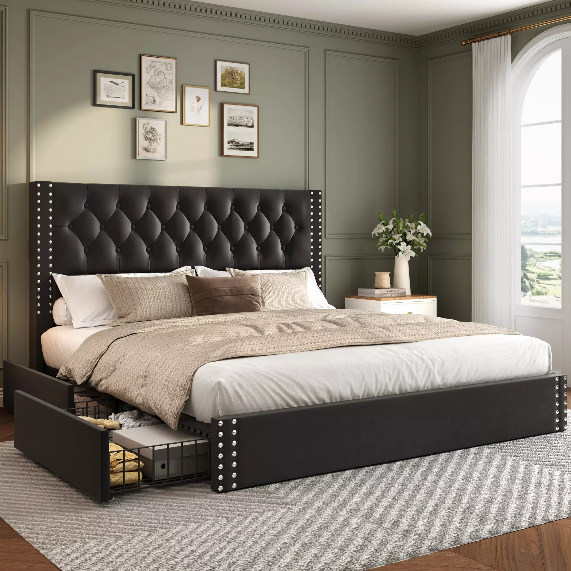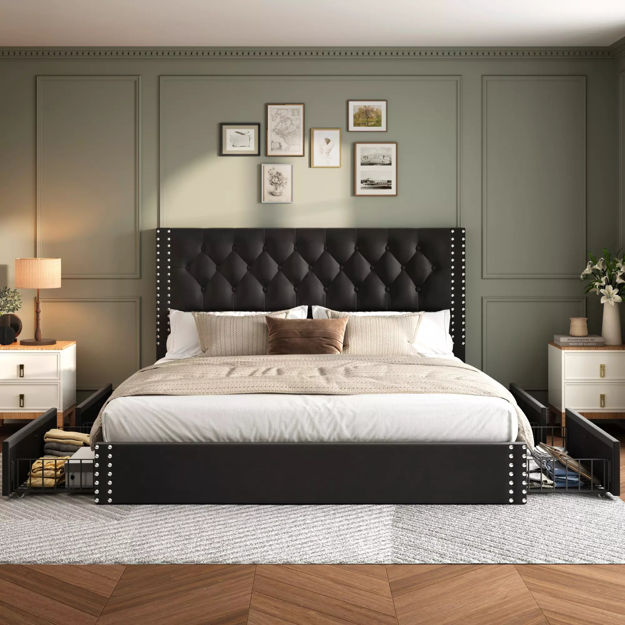 Veva Velvet Upholstered Bed Frame with Storage, 4 Drawers